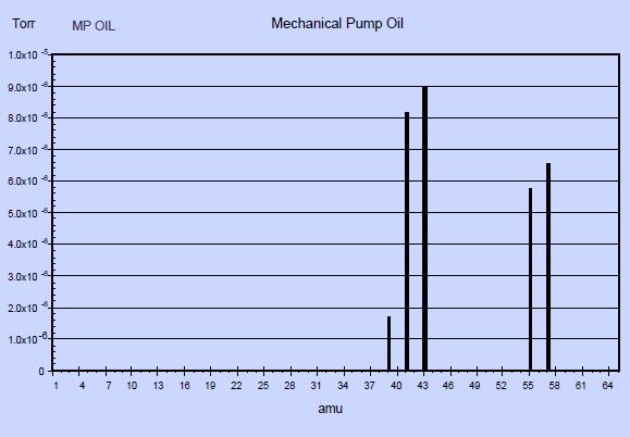 챔버의 전체 압력은 물이 지배적이며 2 × 10^-8 미만이다. 이 경우 전체 압력은 작동 조건을 만족할 수 있지만 스펙트럼은 시스템이 오일로 심하게 오염되었음을 나타낸다. 이는 잘못된 밸브 시퀀스 또는 포화 오일 트랩으로 인해 발생될 수 있다. RGA가 없으면 밸브의 작동 절차와 트랩의 유지 관리 일정만 진공 시스템의 청정도를 유지할 수 있다. RGA를 사용하면 공정이나 실험이 시작되기 전에 청정도를 입증할 수 있다.