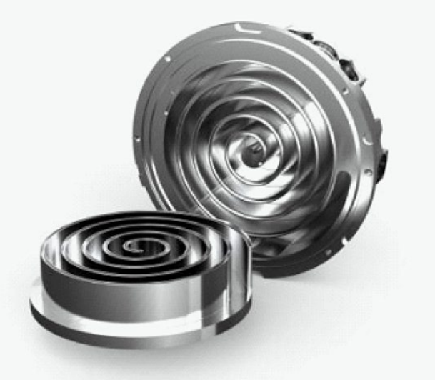 스크롤 펌프는 두 개의 인터리브 아르키메데스 나선형 스크롤을 사용하여 가스를 펌핑하거나 압축합니다. 스크롤 중 하나는 고정되어 있고 다른 하나는 회전하지 않고 편심 궤도를 그리며 스크롤의 외부(즉, 입구) 부분에서 내부(즉, 출구) 부분으로 갇힌 가스를 이동시키는 스크롤 사이의 가스 포켓을 가두어 압축합니다.
